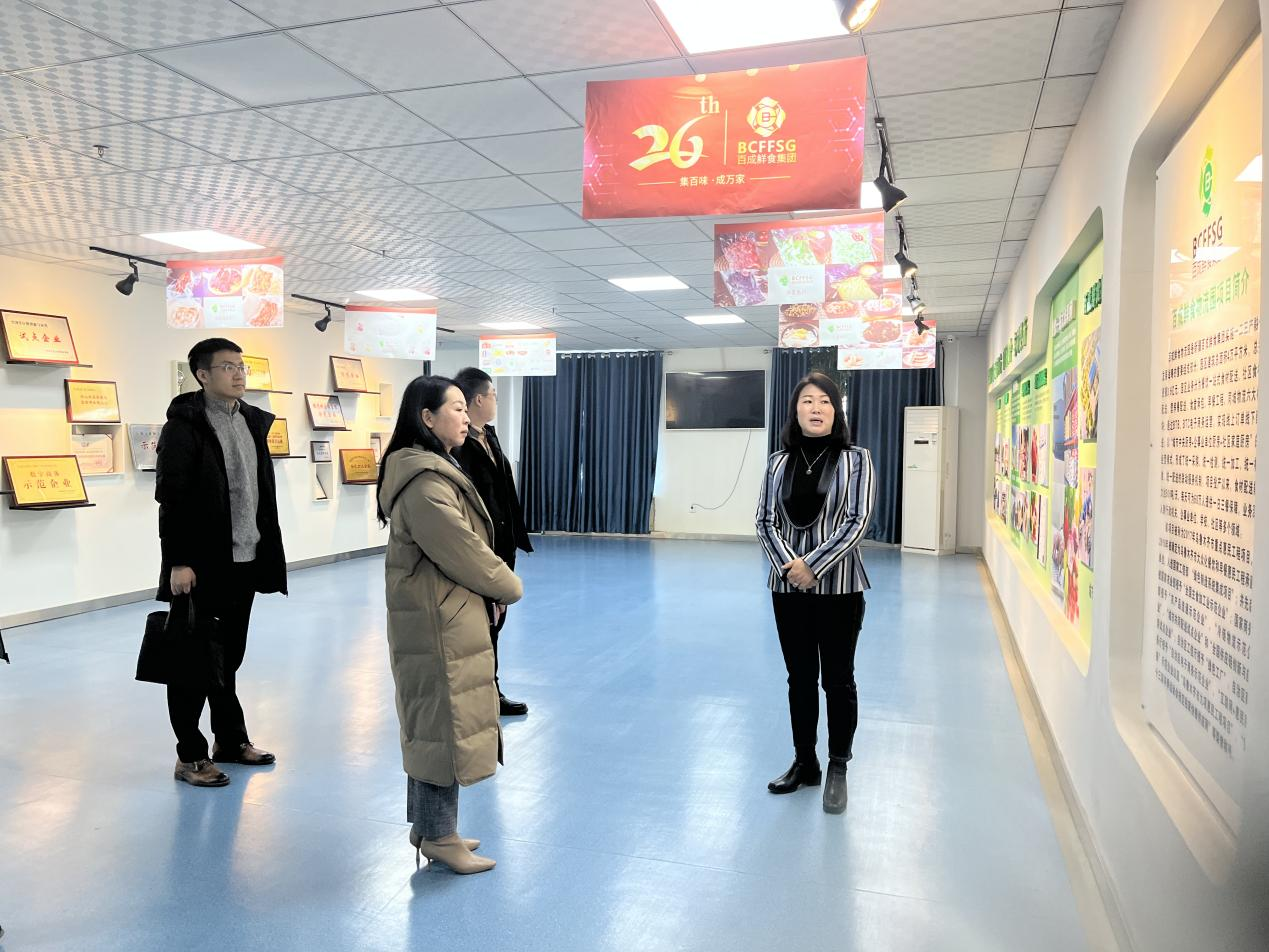 在新疆百成鲜食(集团)供应链有限公司,招商小分队详细了解企业运营模式,餐饮食品产业链发展情况,就中央厨房(预制菜)产业合作事宜与企业负责人深入交流,加快推进项目合作。