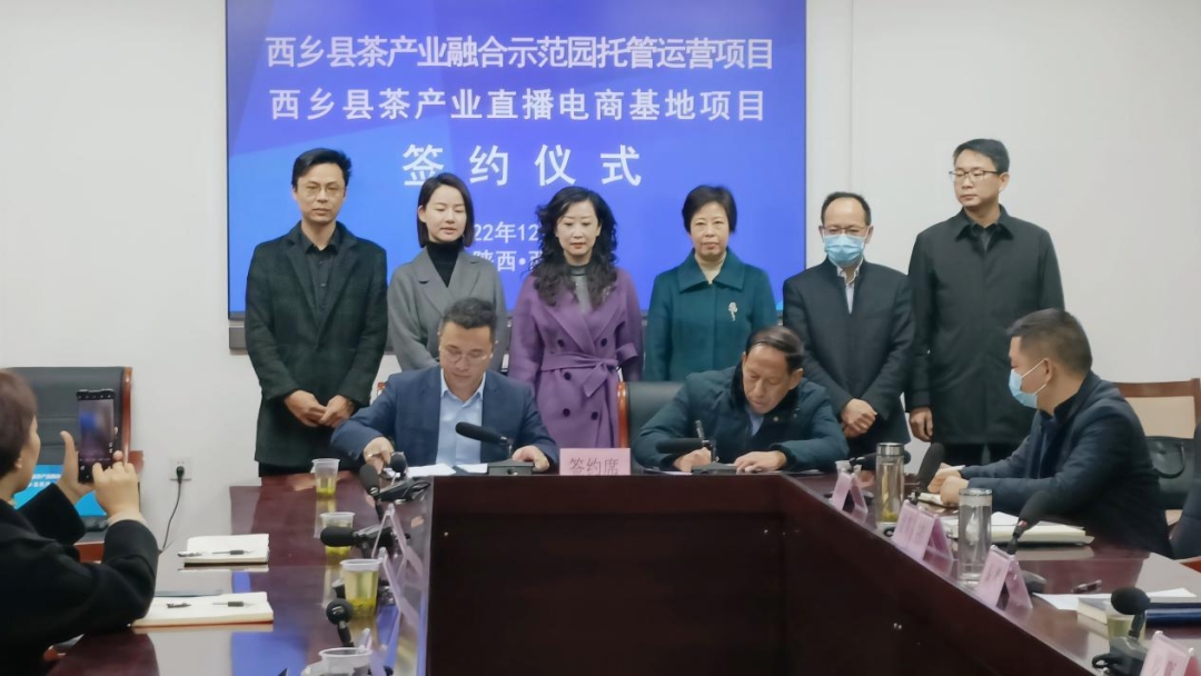 12月9日:西乡县与湖南金贝基业集团有限公司签订西乡县茶叶直播电商基地及茶产业融合示范园托管运营项目。