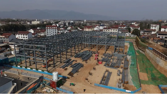 老君镇大健康富硒魔芋食品产业园二期项目建设现场一片繁忙,高耸的钢结构主体挺拔矗立,大型吊车精准吊装,工人们穿梭作业,全力推进屋面及围护结构施工。“钢结构吊装、仓库主体结构已全部完成,正抢抓黄金施工期推进桩板墙安装。”项目施工负责人李亮介绍。